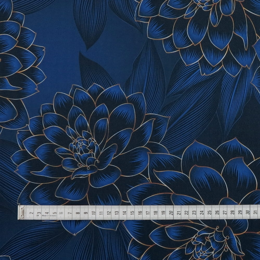 Waterproof Canvas - Large Print Blue Floral - 50cm x 157 cm
