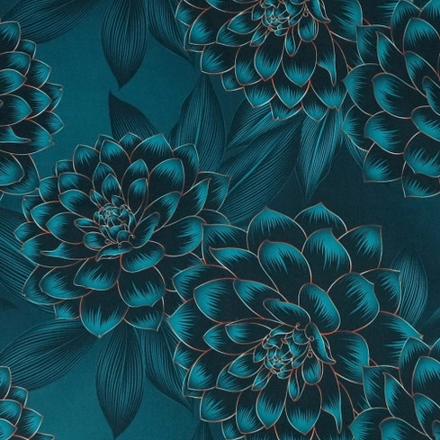 Waterproof Canvas - Large Print Teal Floral - 50cm x 157 cm